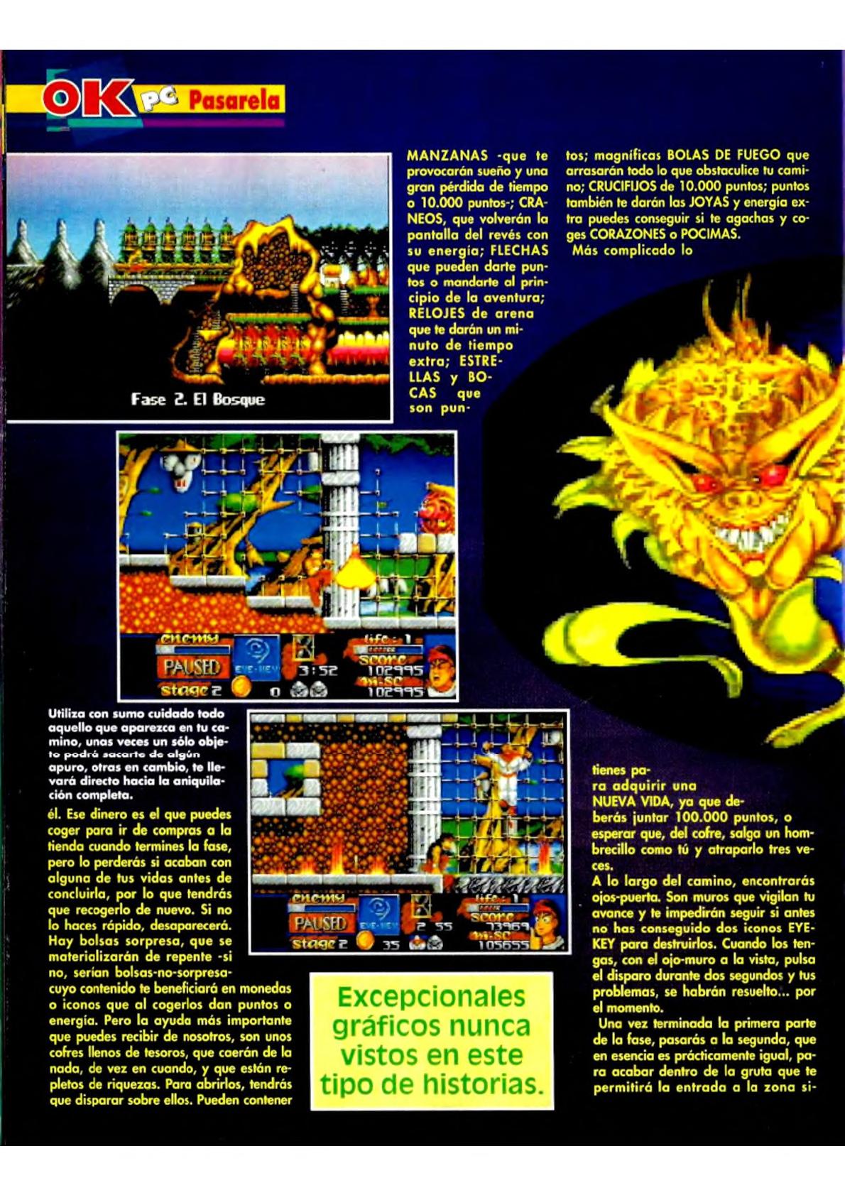 En nuestro recorrido, un escenario horizontal, encontraremos Trolls, Esqueletos armados hasta los dientes, Diablos alados, pequeños dragones, piedras que caen del techo...